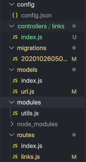 작업을 마치면 config, migrations,models,seeders 폴더가 생성된다.