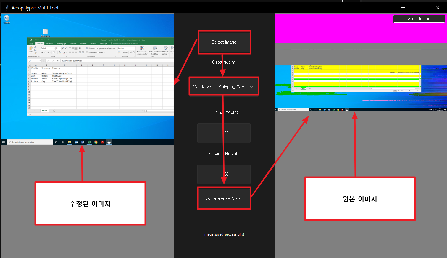 아래 이미지가 그나마 가장 원본과 비슷한(엑셀을 띄워놓은) 이미지였으나 해당 방법으로는 가로/세로 길이를 지정해야 하므로 이 방법으로는 원본 사진을 복구할 수 없었다.