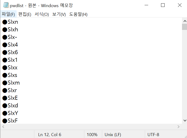 아래 파이썬 코드로 '●'를 'k' 로 바꾸어 john 명령어의 wordlist 로써 사용했다.