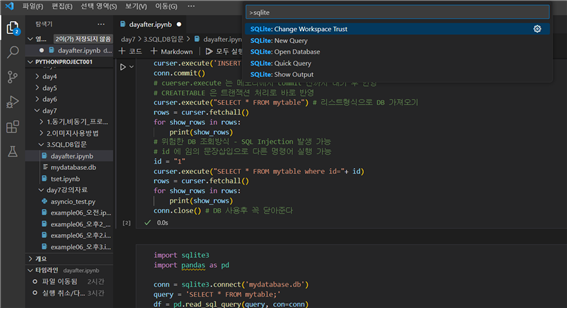 ● 파이썬에서 SQLite 다루기