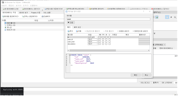 - CMD 창에서 sqlite 접속 어렵다면, DB브라우저 사용해 접속 가능