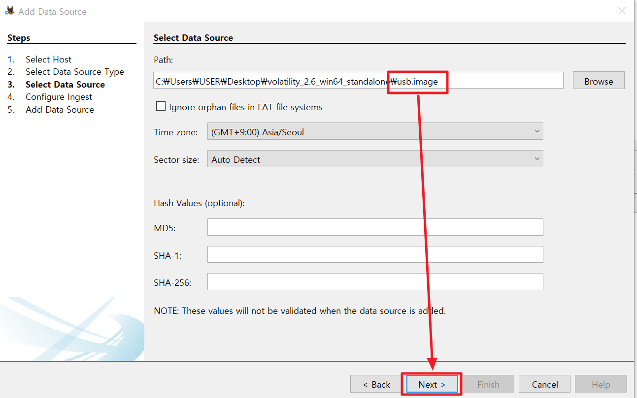 다른 값은 디폴트 설정으로 두고, usb.image 선택한다