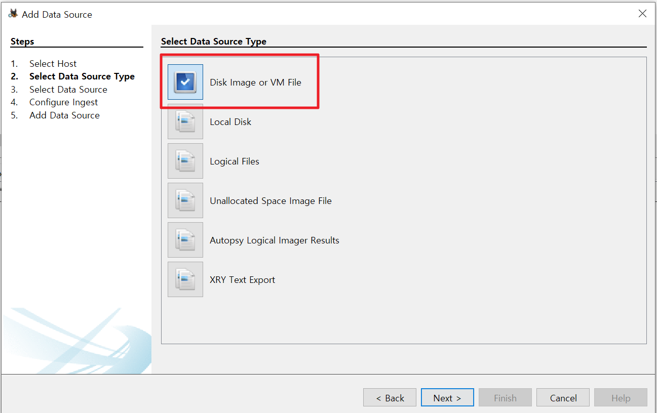 Add Data Source에서 Disk lmage or VM File 선택한다.