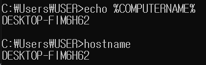 아래 사진은 윈도우 OS의 명령어 프롬프트 창에서 호스트 이름을 확인한 결과이다.