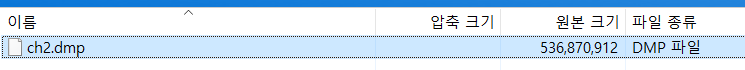 압축해제하면 아래와 같은 메모리 dump 파일이 나온다.
