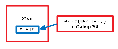 메모리 덤프(어떤 장비인지 모름) 주체 장비의 호스트 이름을 찾으면 된다.