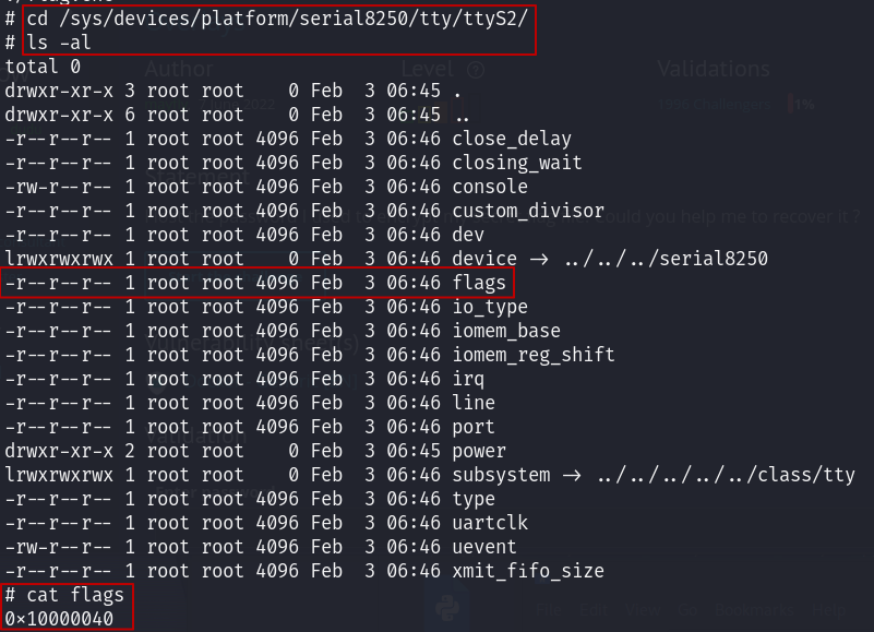 cat /sys/devices/platform/serial8250/tty/ttyS1/flags