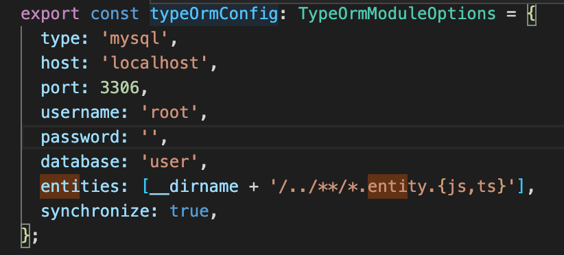 이 entityes옵션에는 db모델이 정의돼 있는 파일의 위치를 명시해야한다.