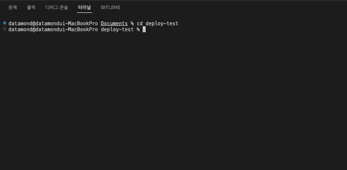 1-4. 'cd deploy-test' 명령으로 방금 생성한 폴더로 이동한다.