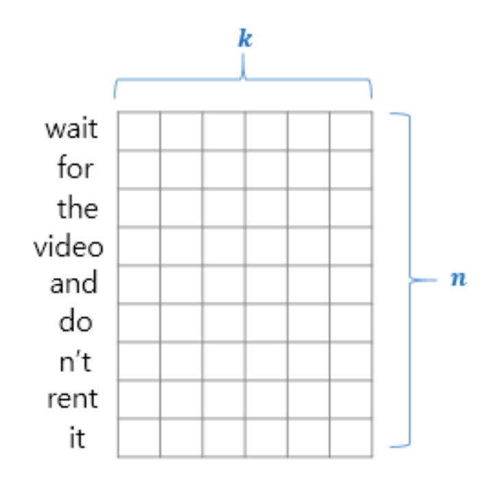 커널의 너비 = 임베딩 벡터 차원(k)으로 고정