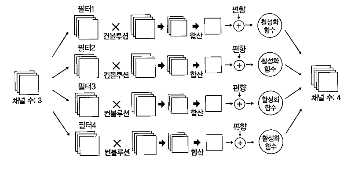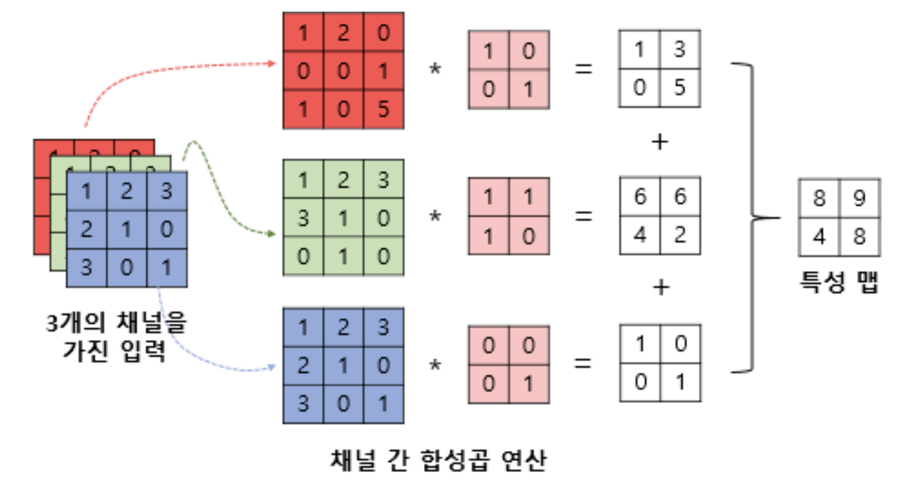 각 채널에서 합성곱 연산하고 feature map값들 더함
