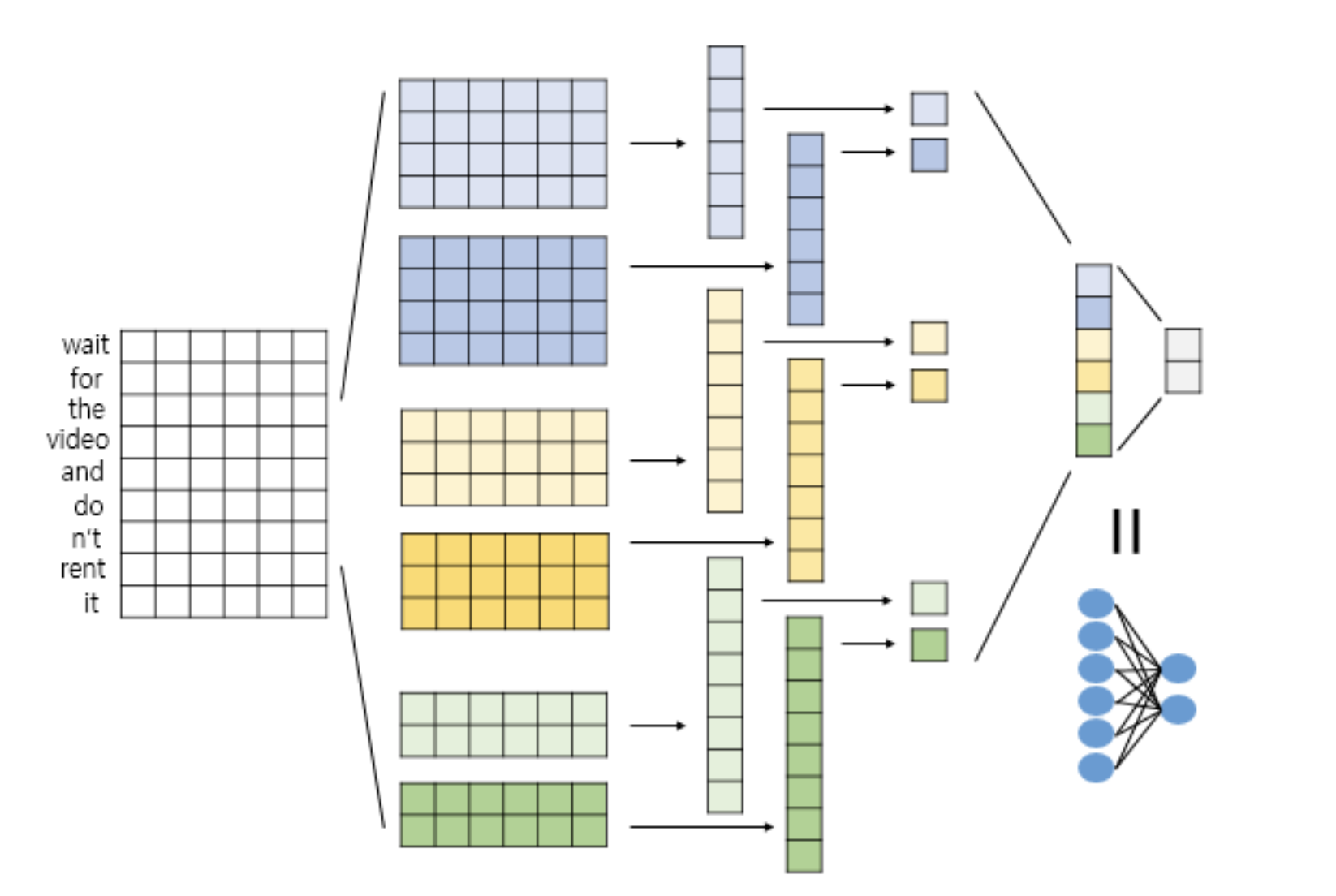 1D CNN은 전체 시퀀스 입력 안의 더 작은 시퀀스에 집중하여 정보를 얻어내는 동작