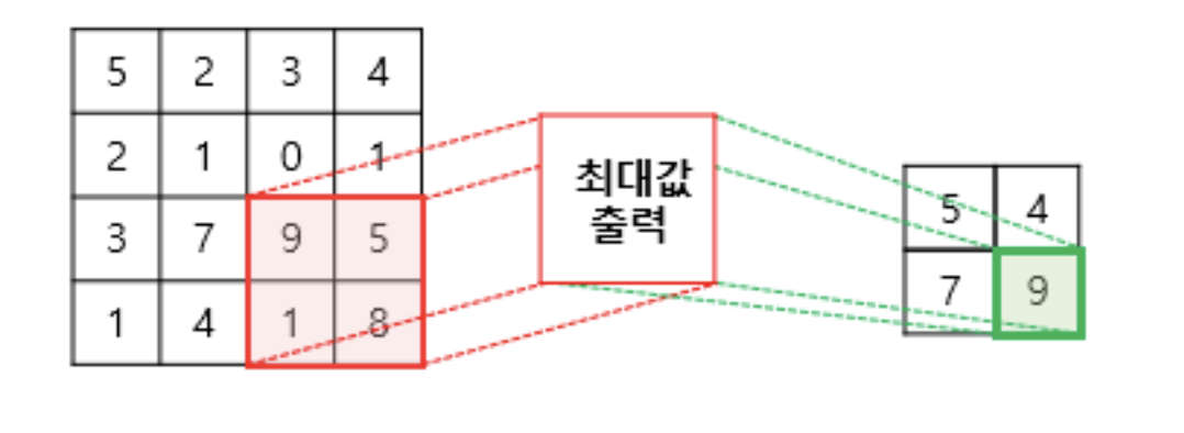 특성 맵을 다운샘플링하여 특성 맵의 크기를 줄이는 역할 (각 영역을 대표하는 값 추출)