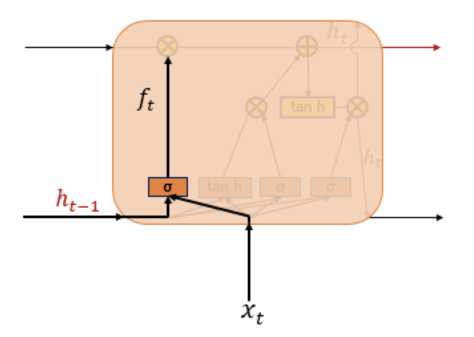 - ft=σ(Wxfxt+Whfht−1+bf)