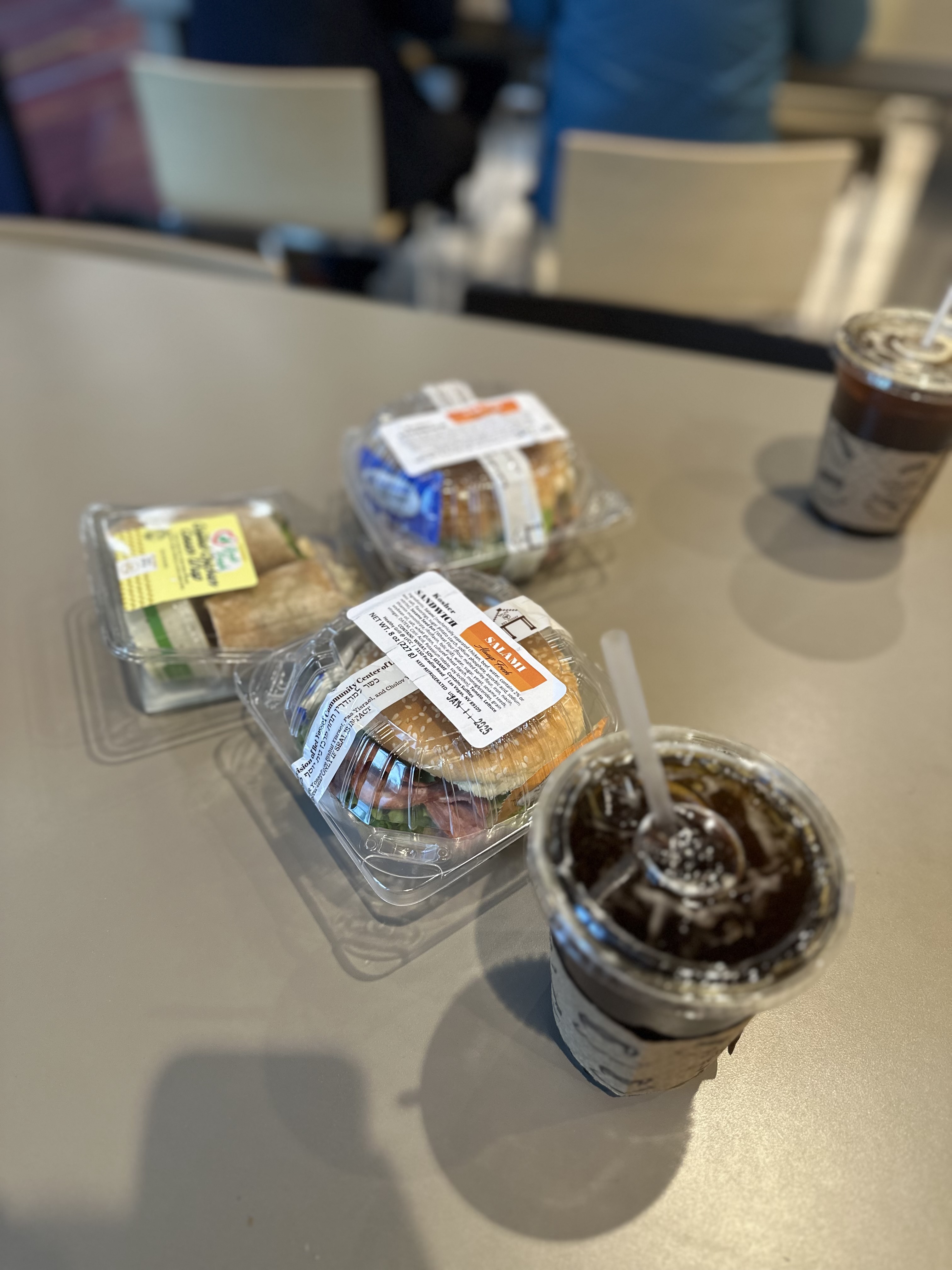 로비에서 샌드위치와 커피를 구입했다.