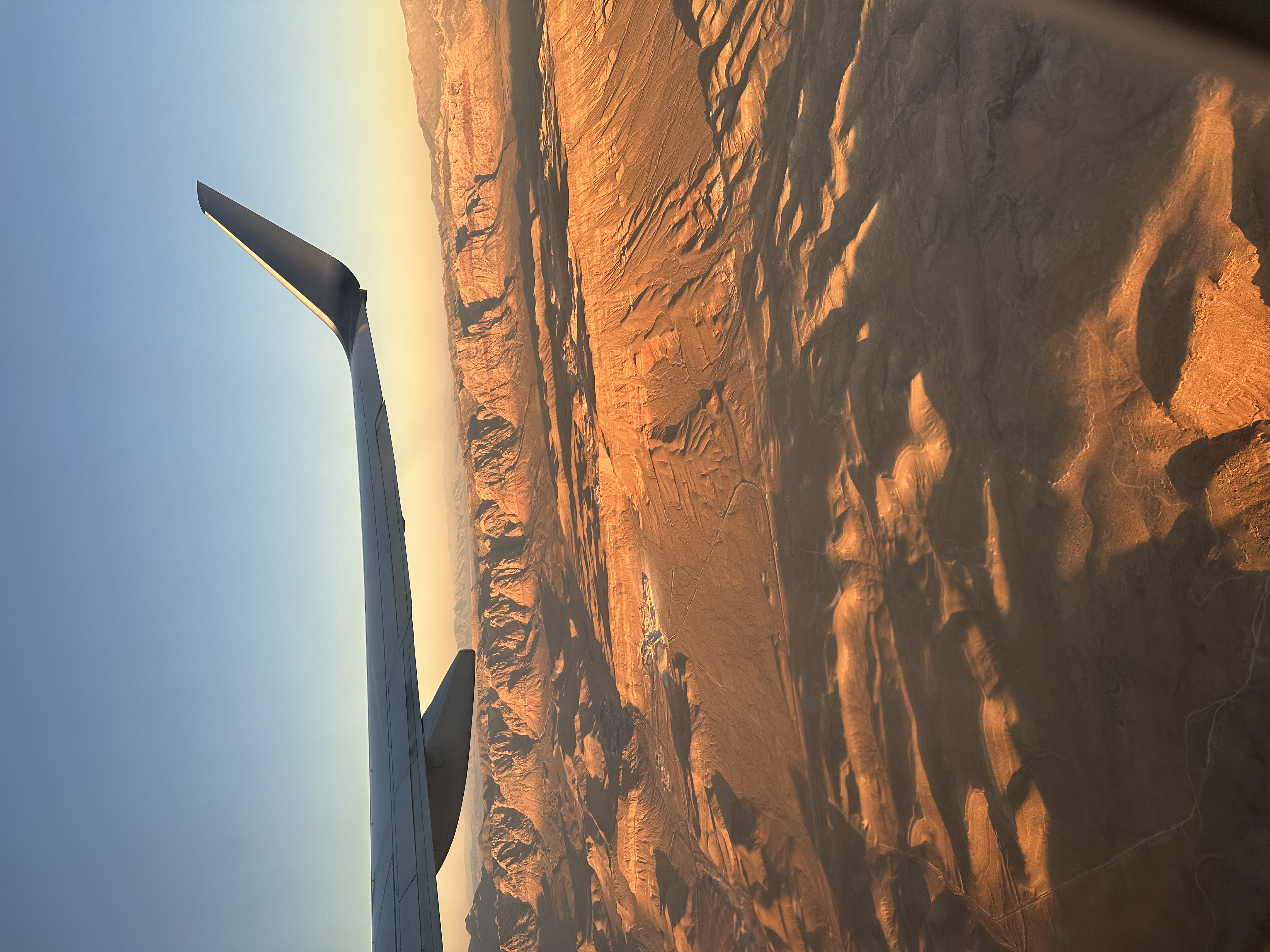 갈 때는 밤이라 몰랐는데, 돌아오는 비행기에서 내려다본 사막 풍경이 장관이다
