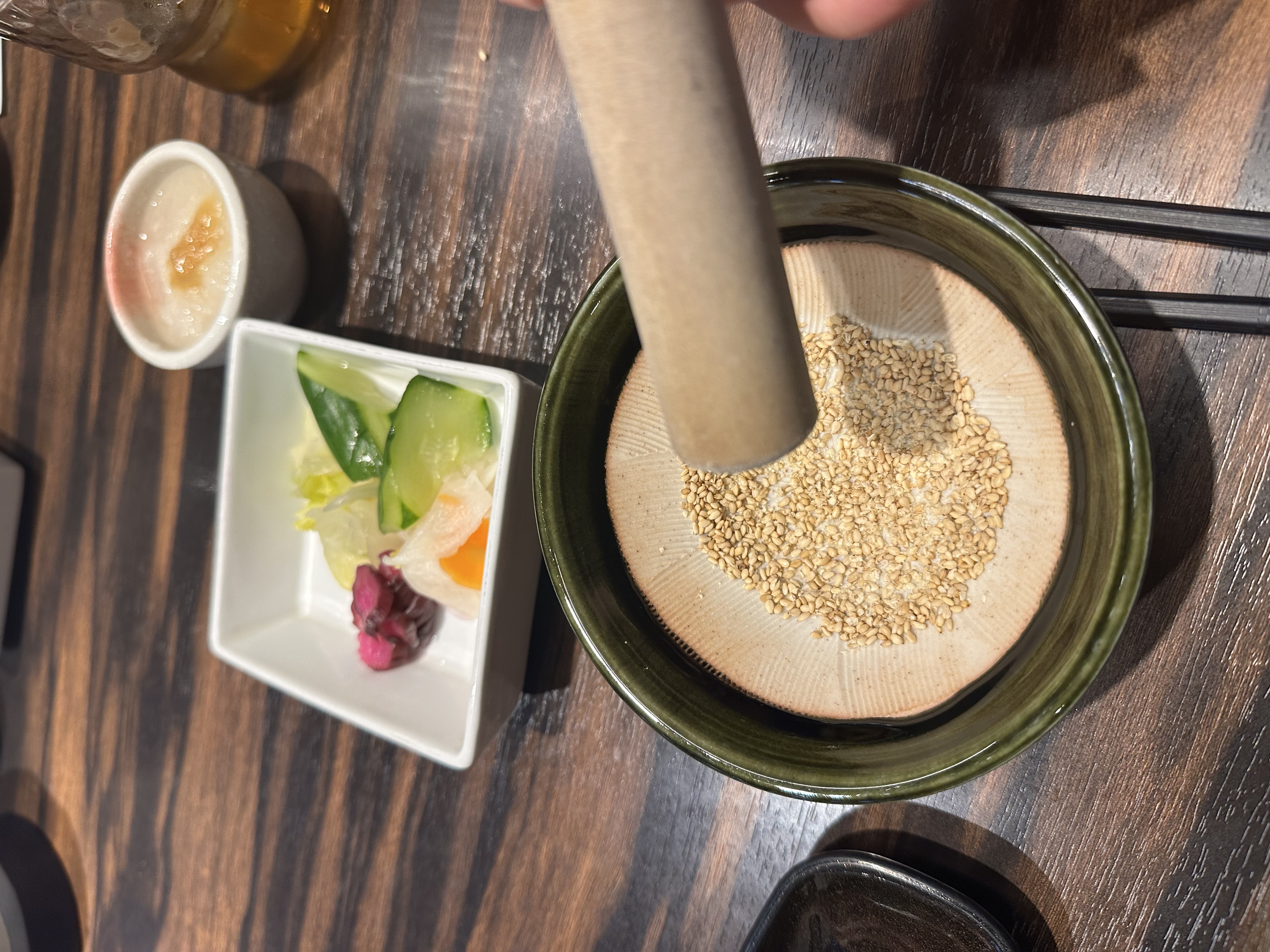 깨를 직접 빻으며 기다림의 지루함을 달랜다.