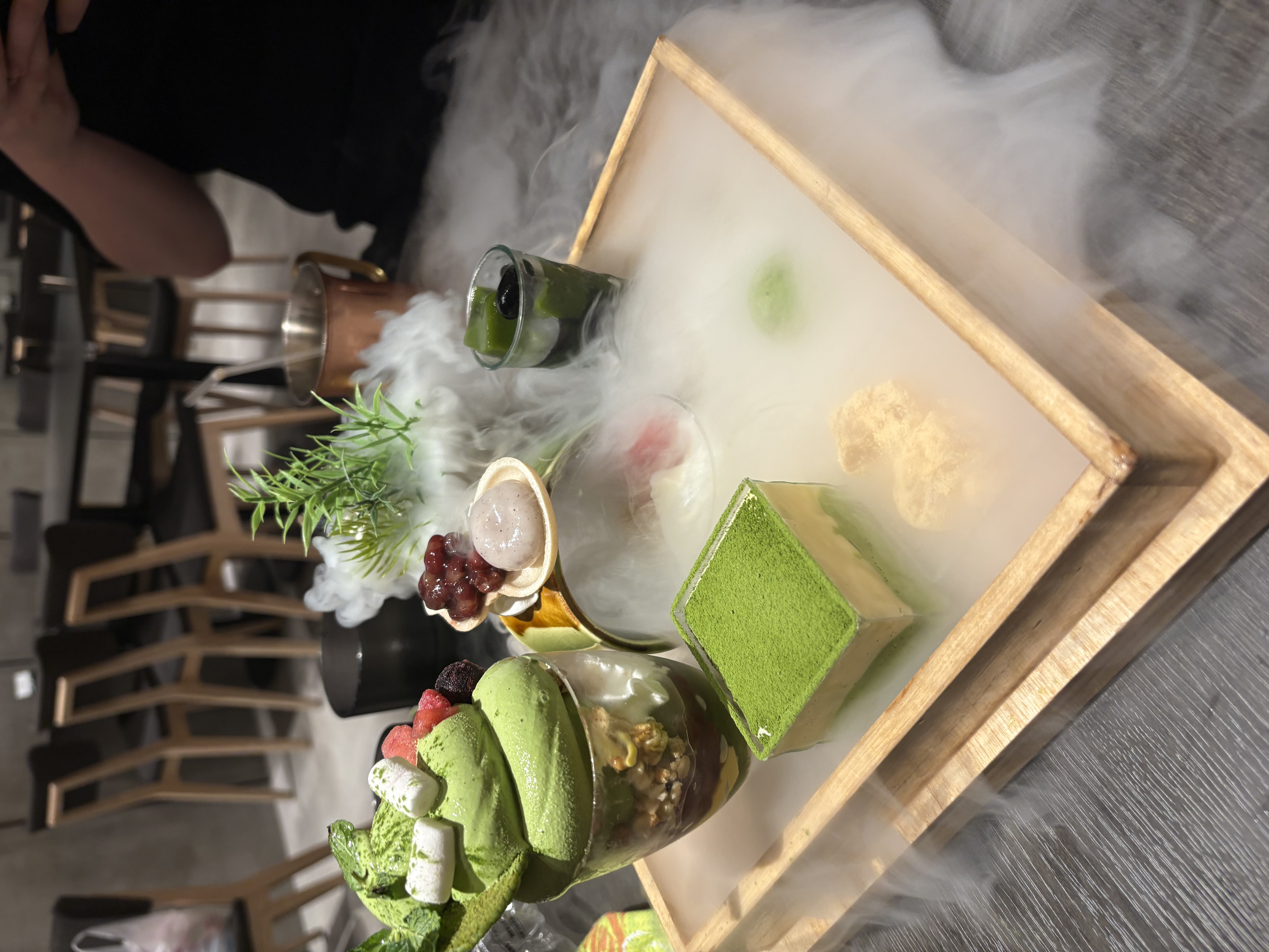 말차 전문 카페에서 드라이아이스 퍼포먼스 디저트 영접했다.