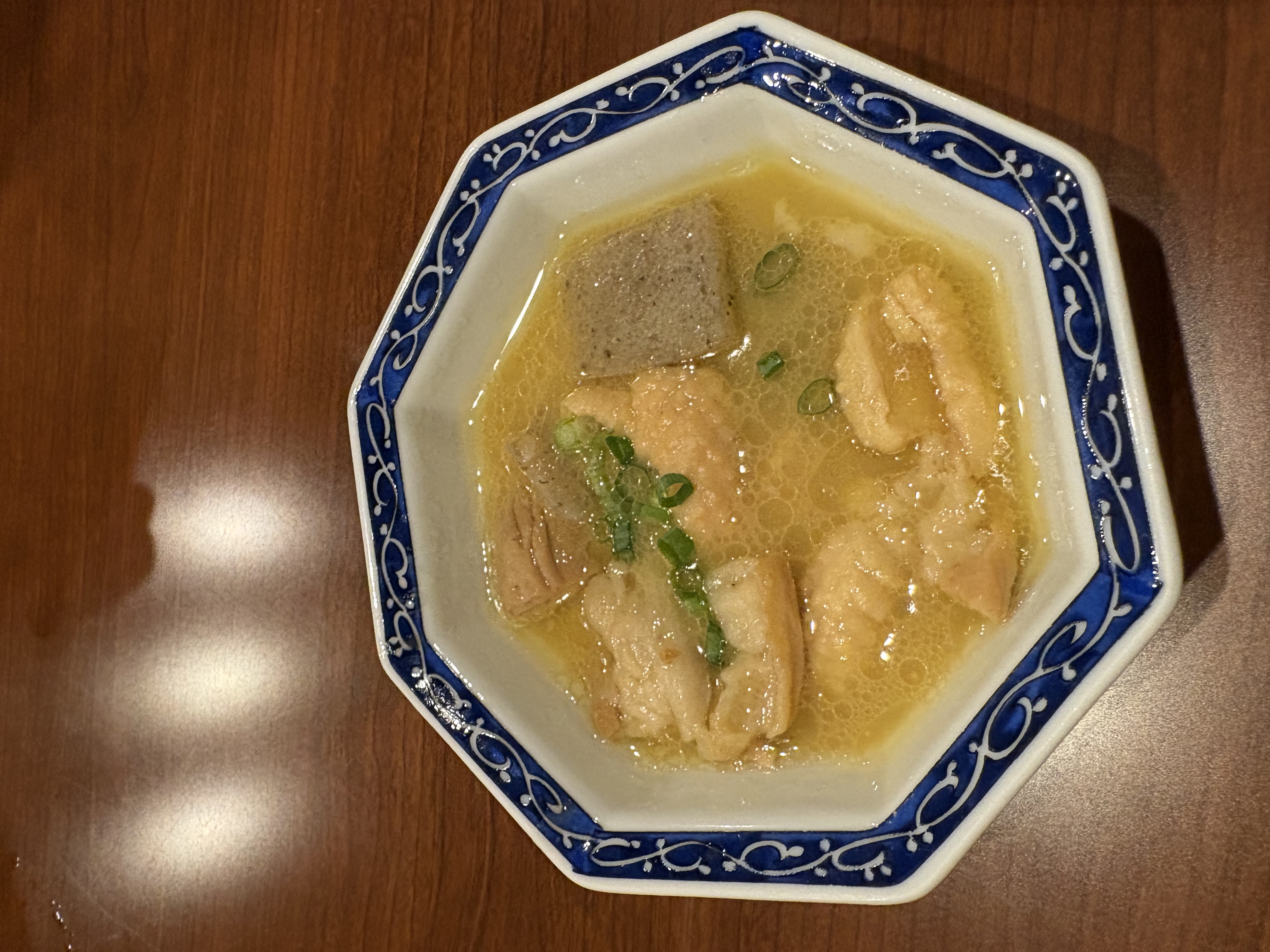 기본 안주 닭 껍질 수프부터 깊은 맛이다.