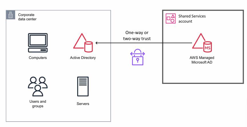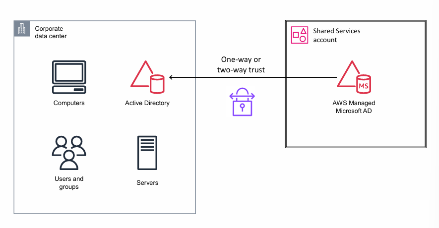 Shared Services account + AWS Managed Microsoft AD = AWS 안에 새로 세운 “분원 건물”