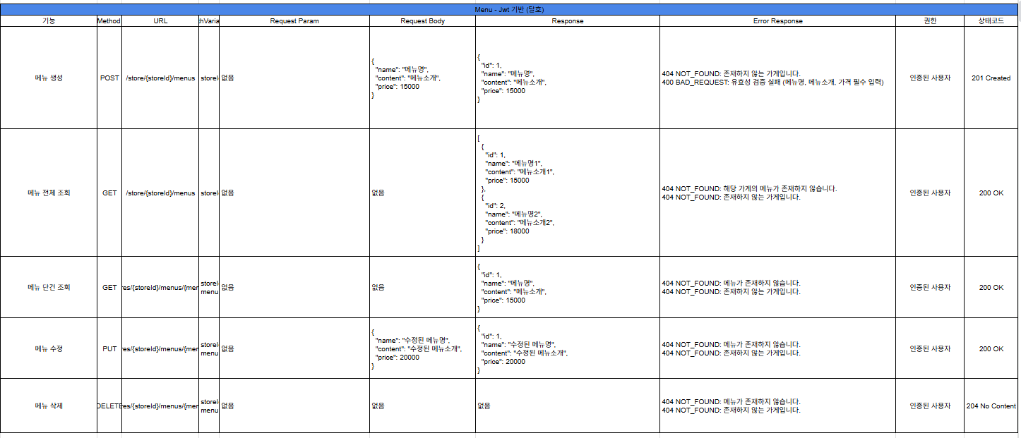 | 강달호 | 메뉴 CRUD | 발표 준비, 시연 영상 |