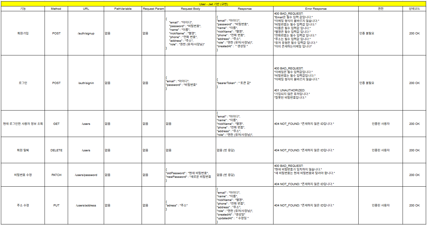 | 김규현 | 고객 CRUD JWT 토큰 Spring security | 발표 준비, 트러블 슈팅 정리, 발표 자료 제작 |