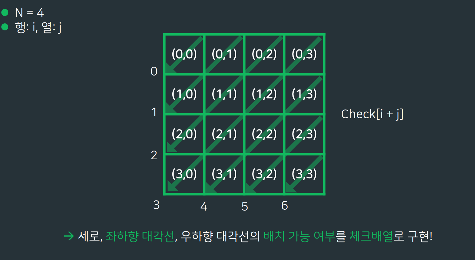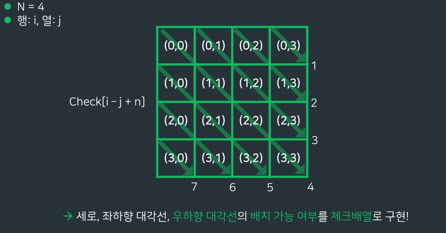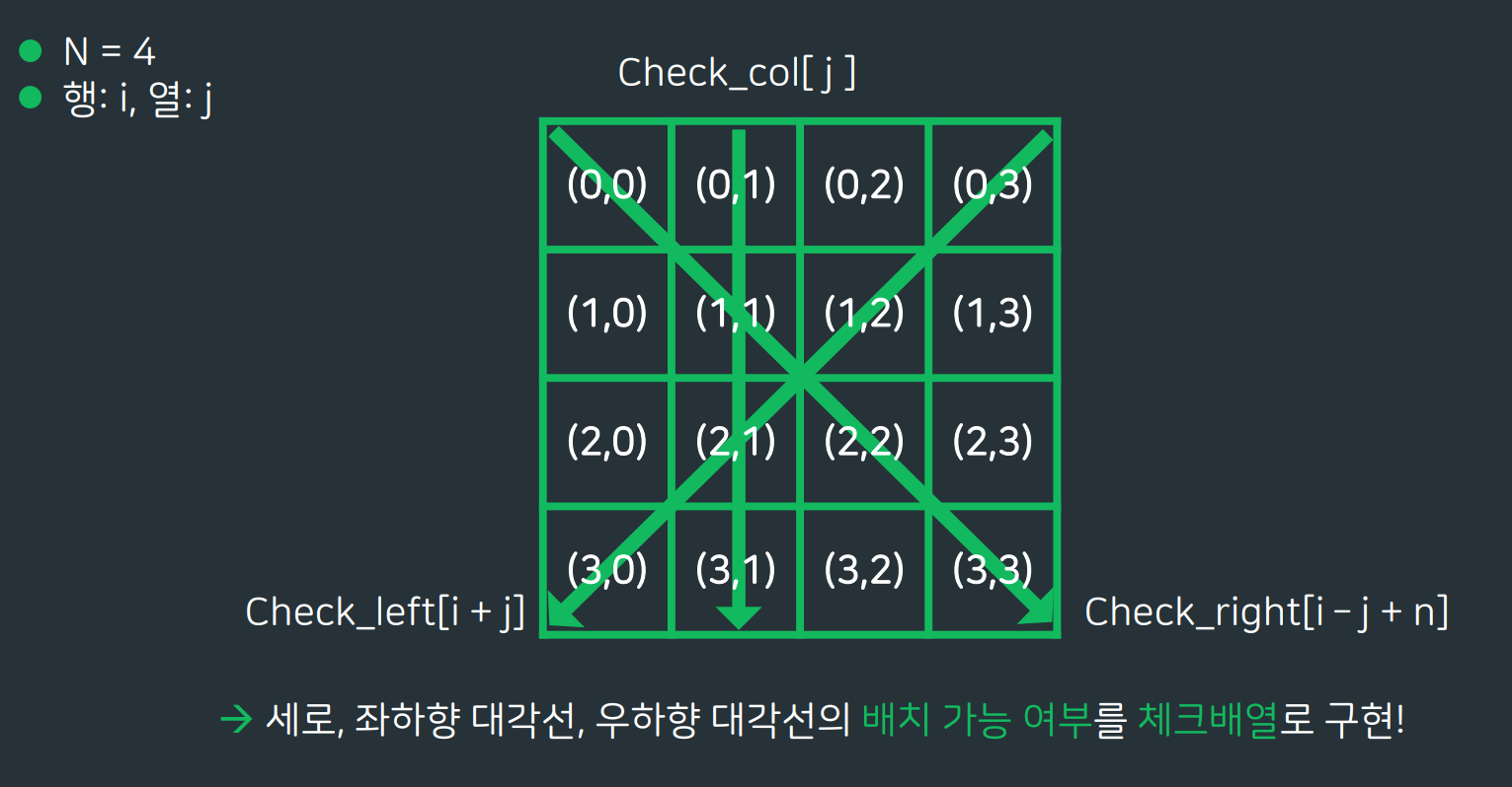 N X N인 체스판 위에 퀸 N개를 서로 공격할 수 없게 놓는 경우의 수를 구하는 문제