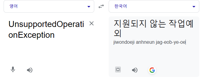 해당 Exception 번역기로 확인 해보니깐. 지원하지 않는 작업 예외라고 한다.
