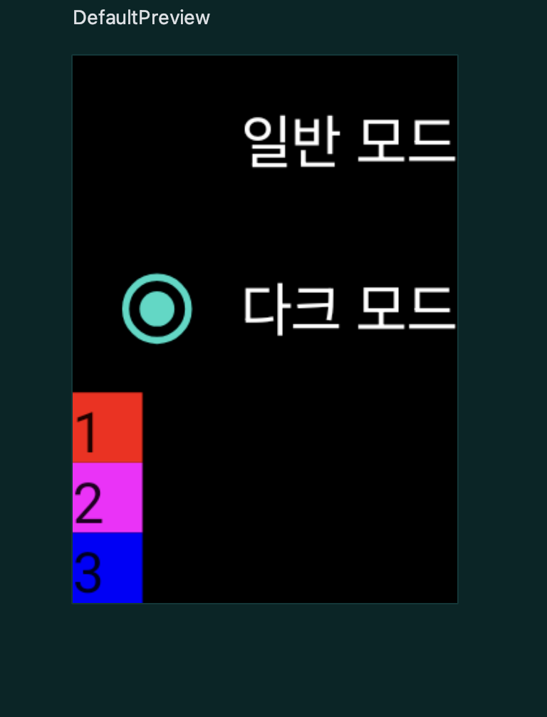 RadioButtonWithText(text = "다크 모드", color = color, selected = isDarkMode) {