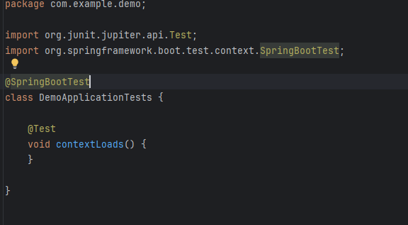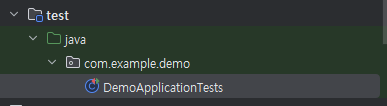 스프링 이니셜라이저에서 프로젝트를 실행하면 아래처럼 Test클래스가 자동으로 생성된다.