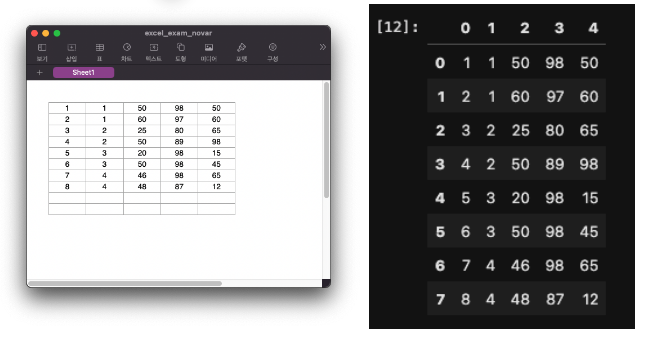 df_exam = pd.read_excel('excel_exam.xlsx') #엑셀 파일을 불러와 df_exam에 할당
