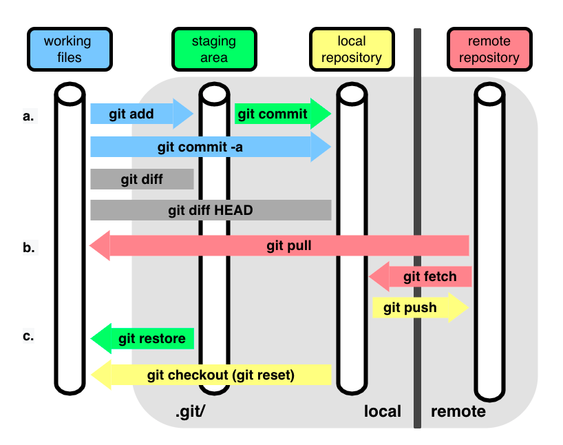 git push <저장소명> <브랜치명> : ..브랜치에 남긴 코드 변경 이력을 origin라는 원격 저장소에 올리겠다(push)