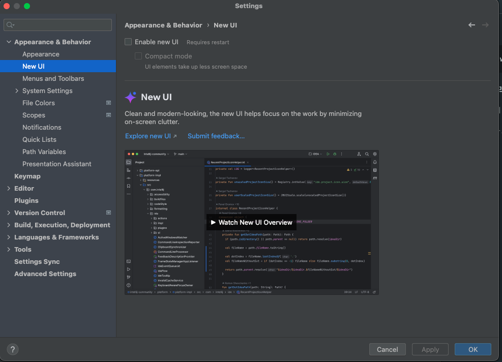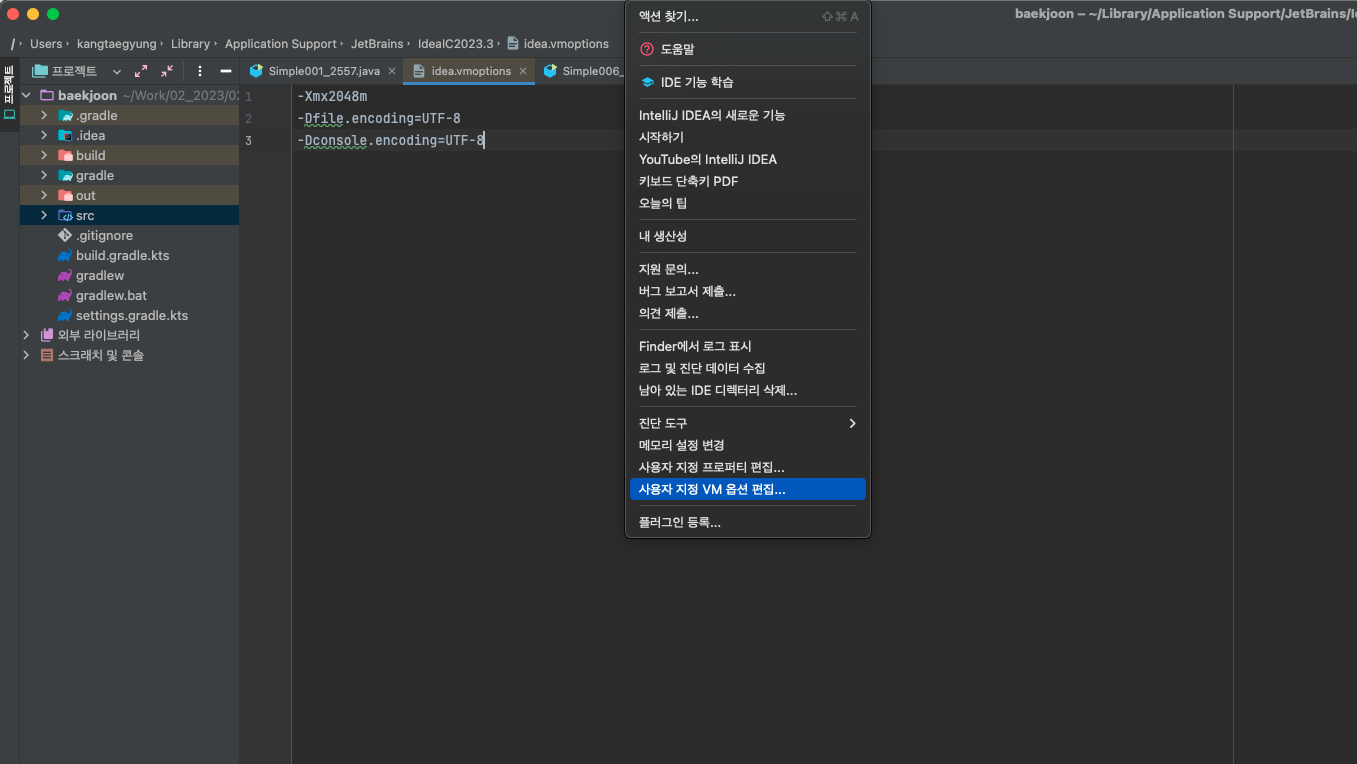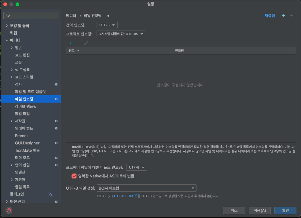 - 인텔리제이는 외국회사에서 개발되어 기본적으로 영어가 기본임