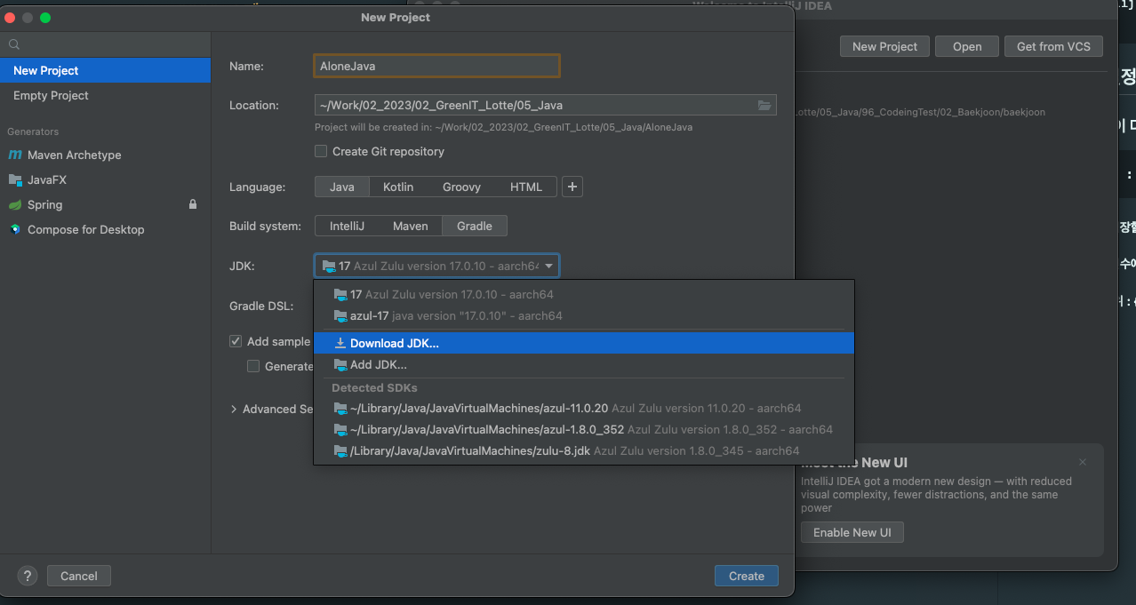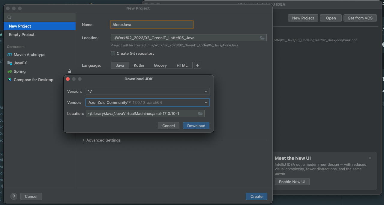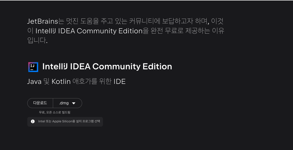 - 다운로드 : https://www.jetbrains.com/ko-kr/idea/download/?section=mac