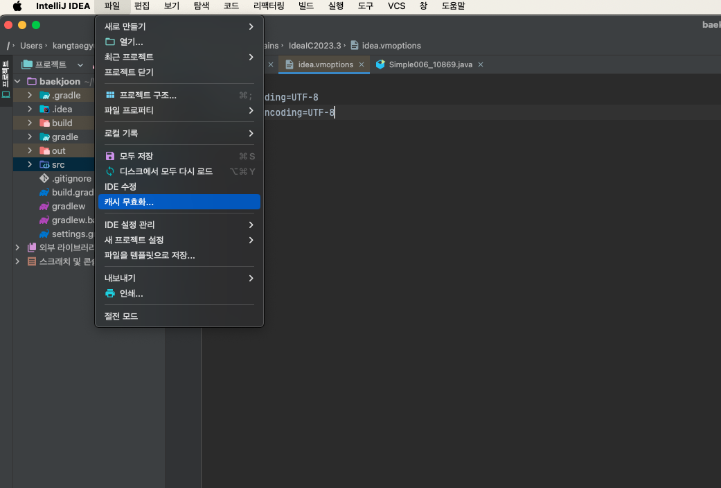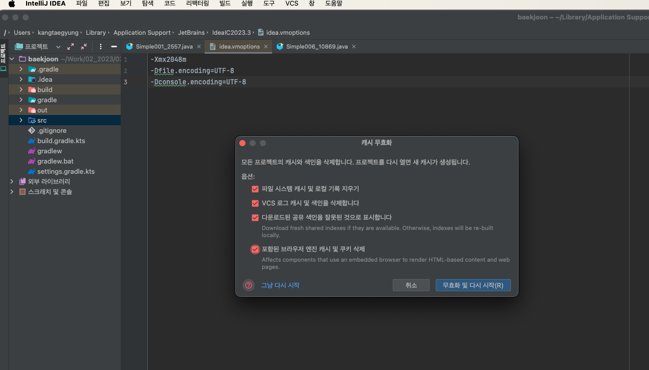 3) 파일 - 캐시무효화 : 모두 체크하고 재실행
