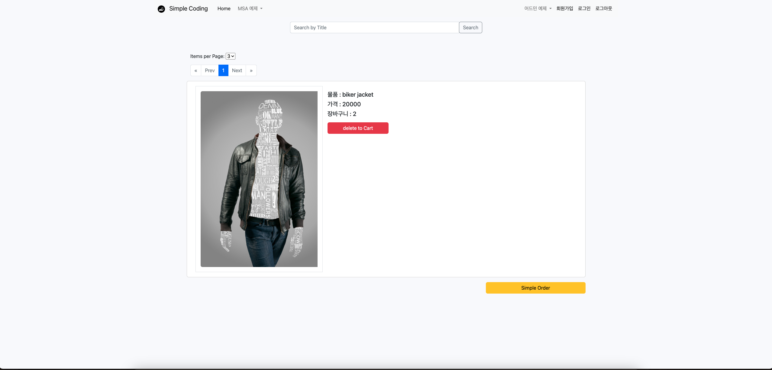 | GET | /simple-order/{sono} | 장바구니 상세조회 |