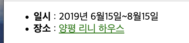 <li><span class="bold">일시</span> : 2019년 6월15일~8월15일</li>