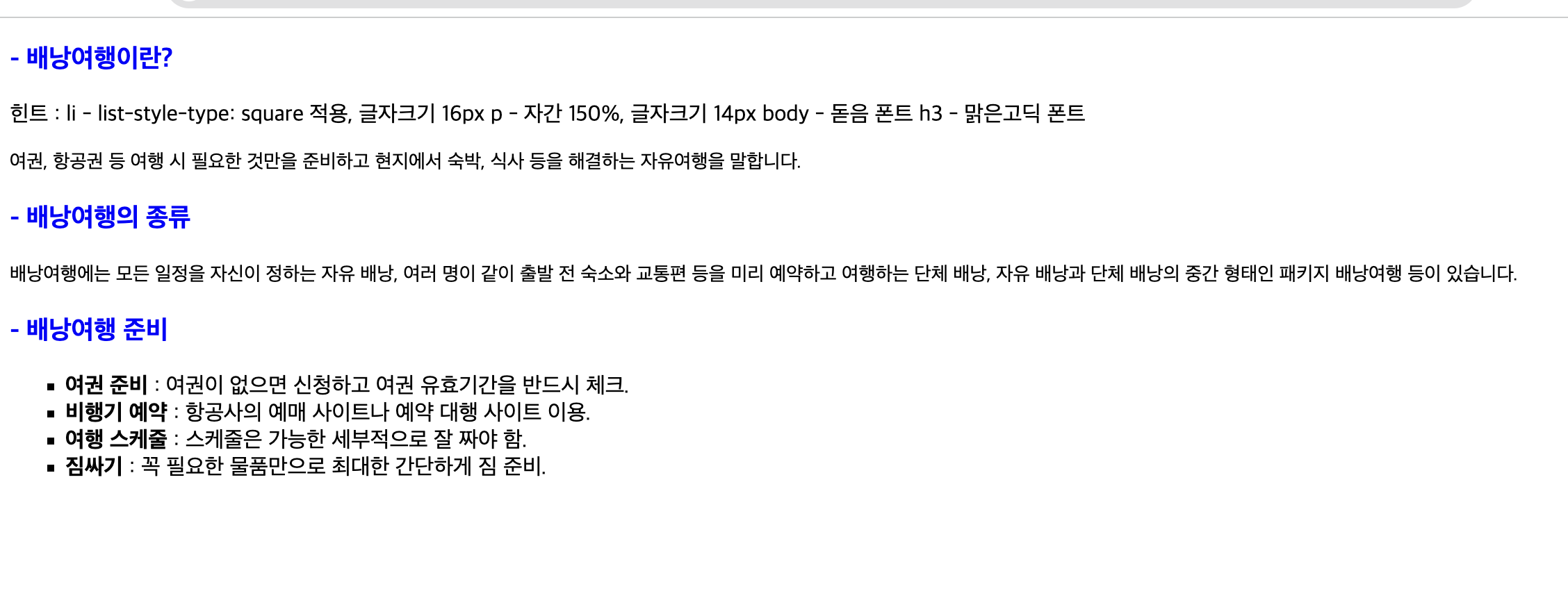<h3>- 배낭여행 준비</h3>