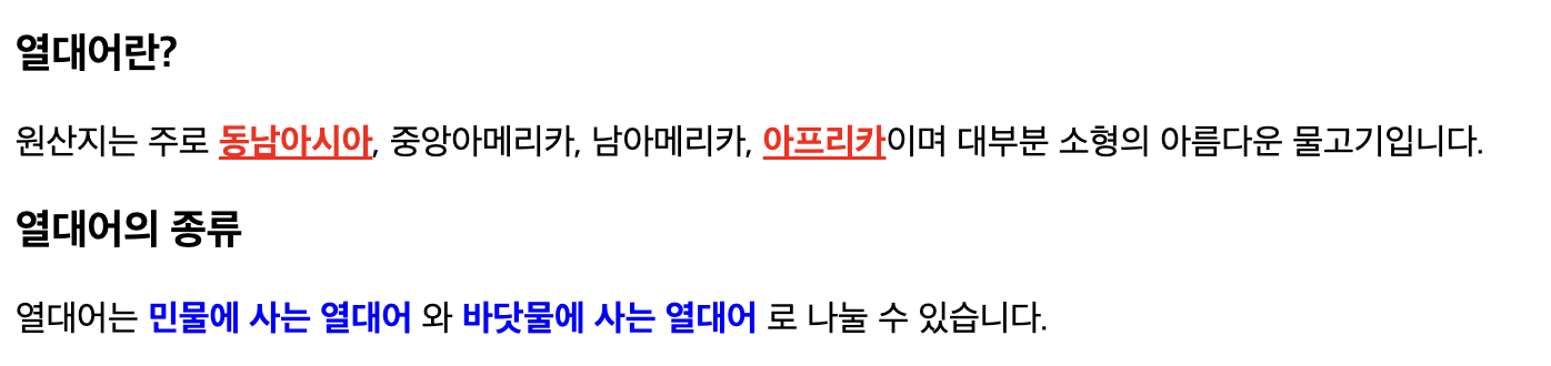 <p>열대어는 <span class="font2">민물에 사는 열대어</span>