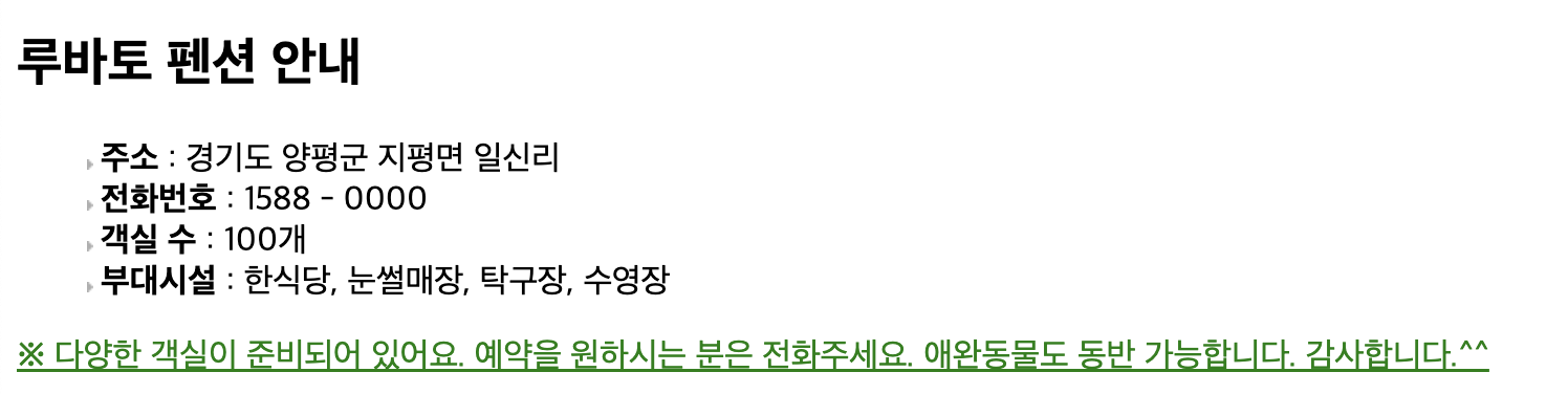 <h2>루바토 펜션 안내</h2>