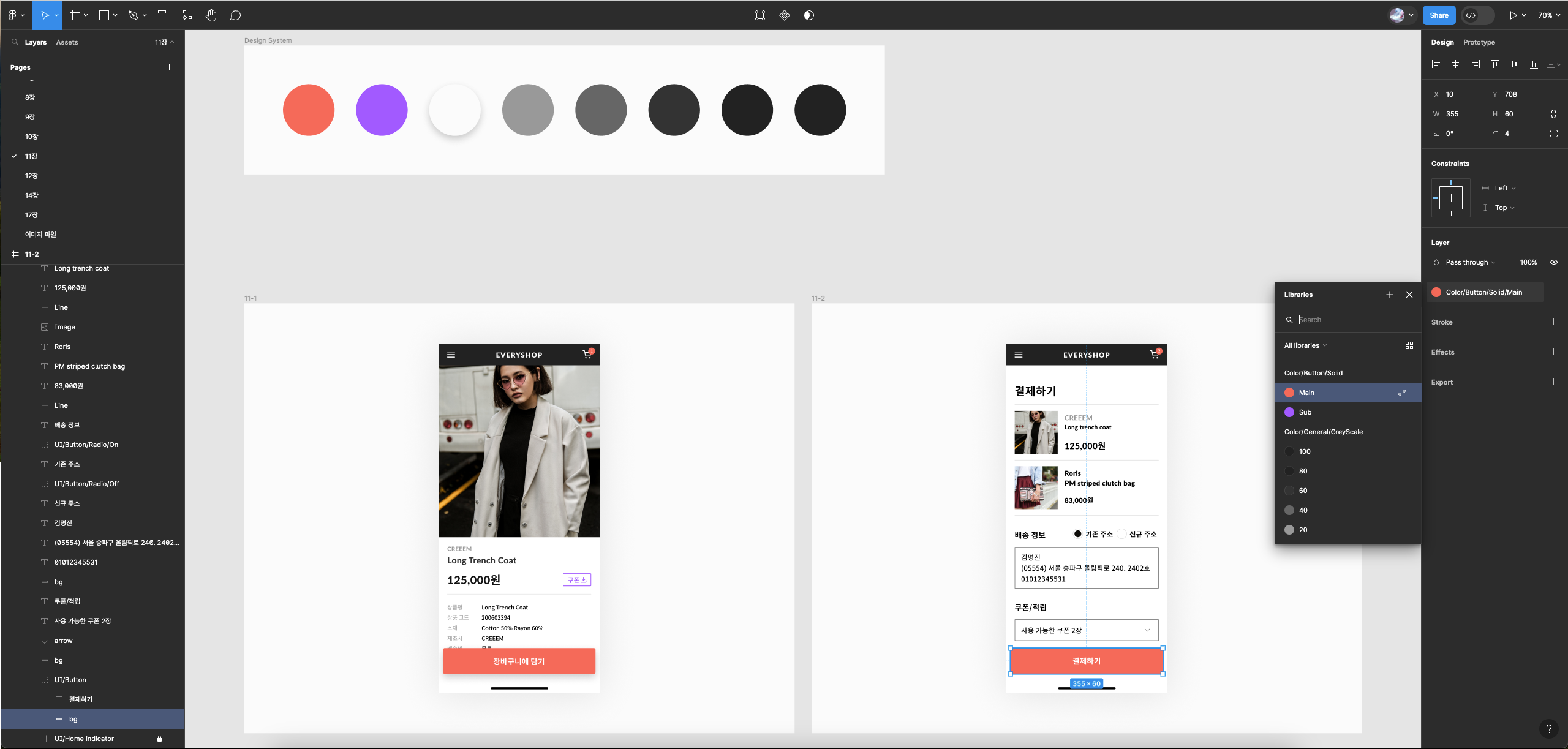 - 옆 팝업 : Color/Button/Solid/Main 선택
