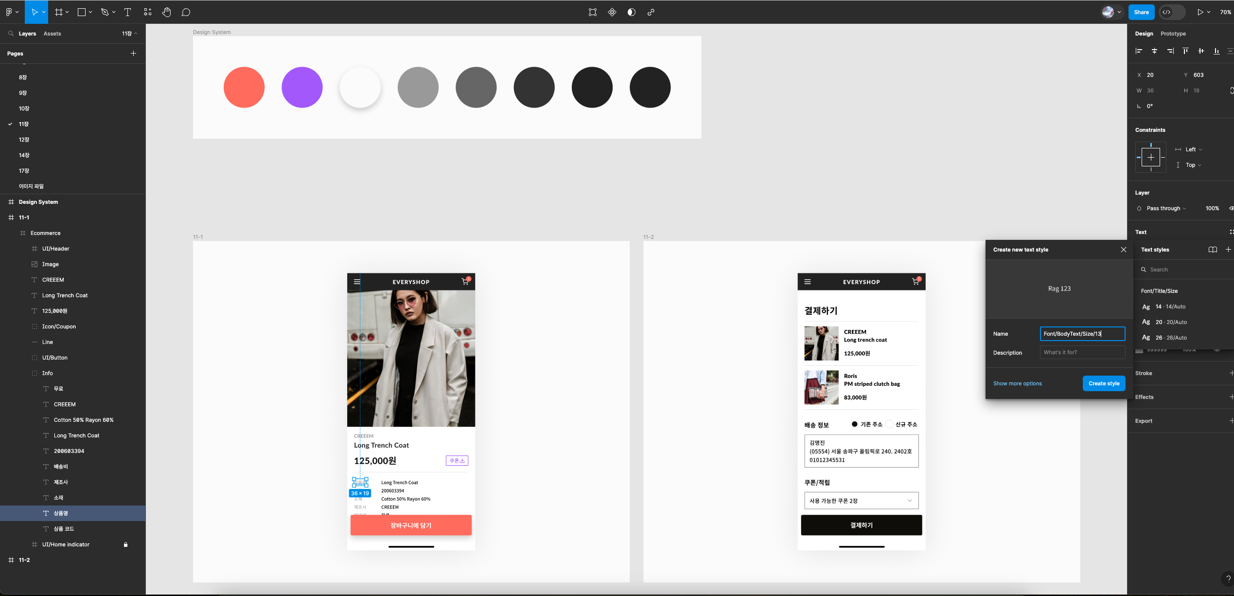 - 옆에 팝업 보임 : Font/BodyText/Size/13 입력