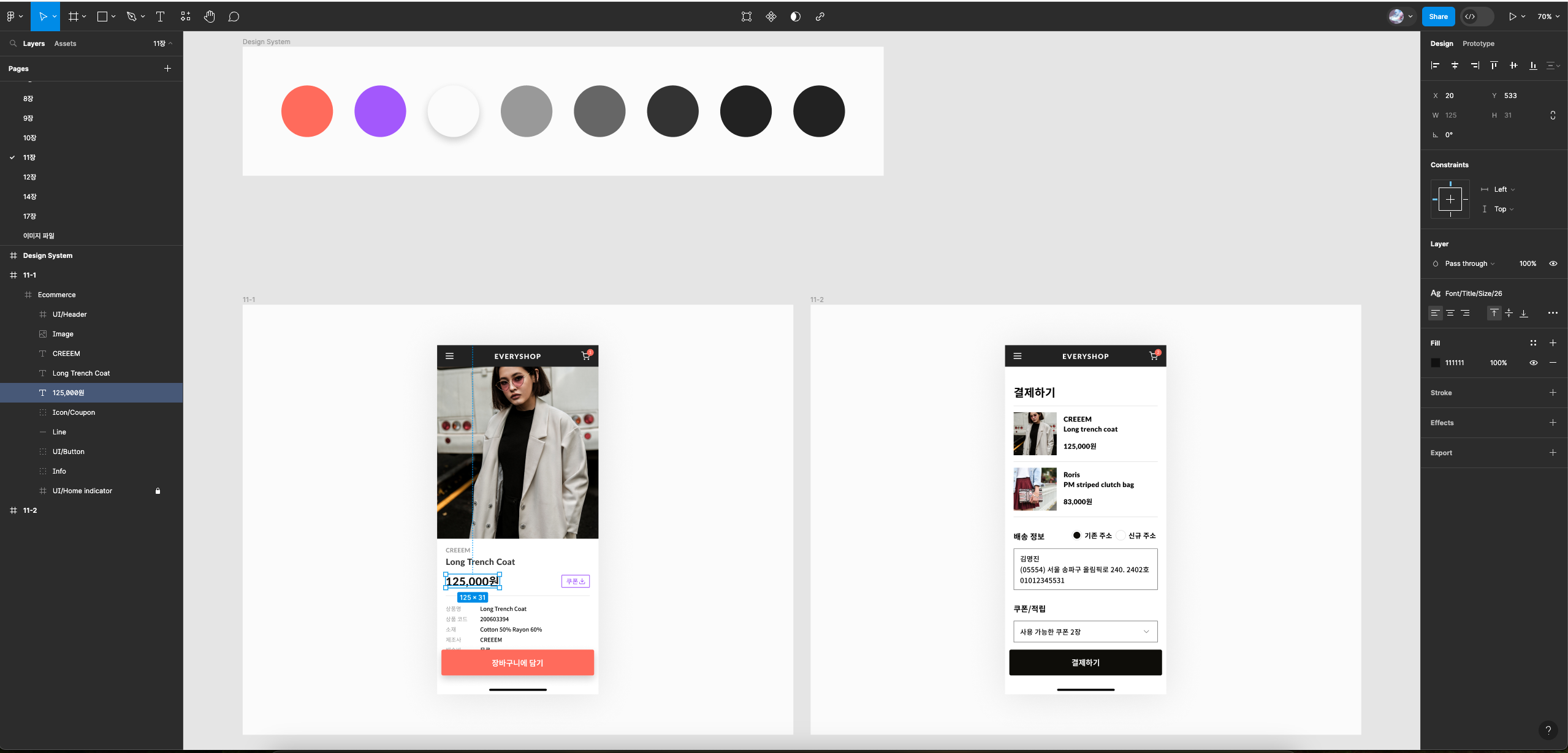 - 125,000원 : Font/Title/Size/26 입력