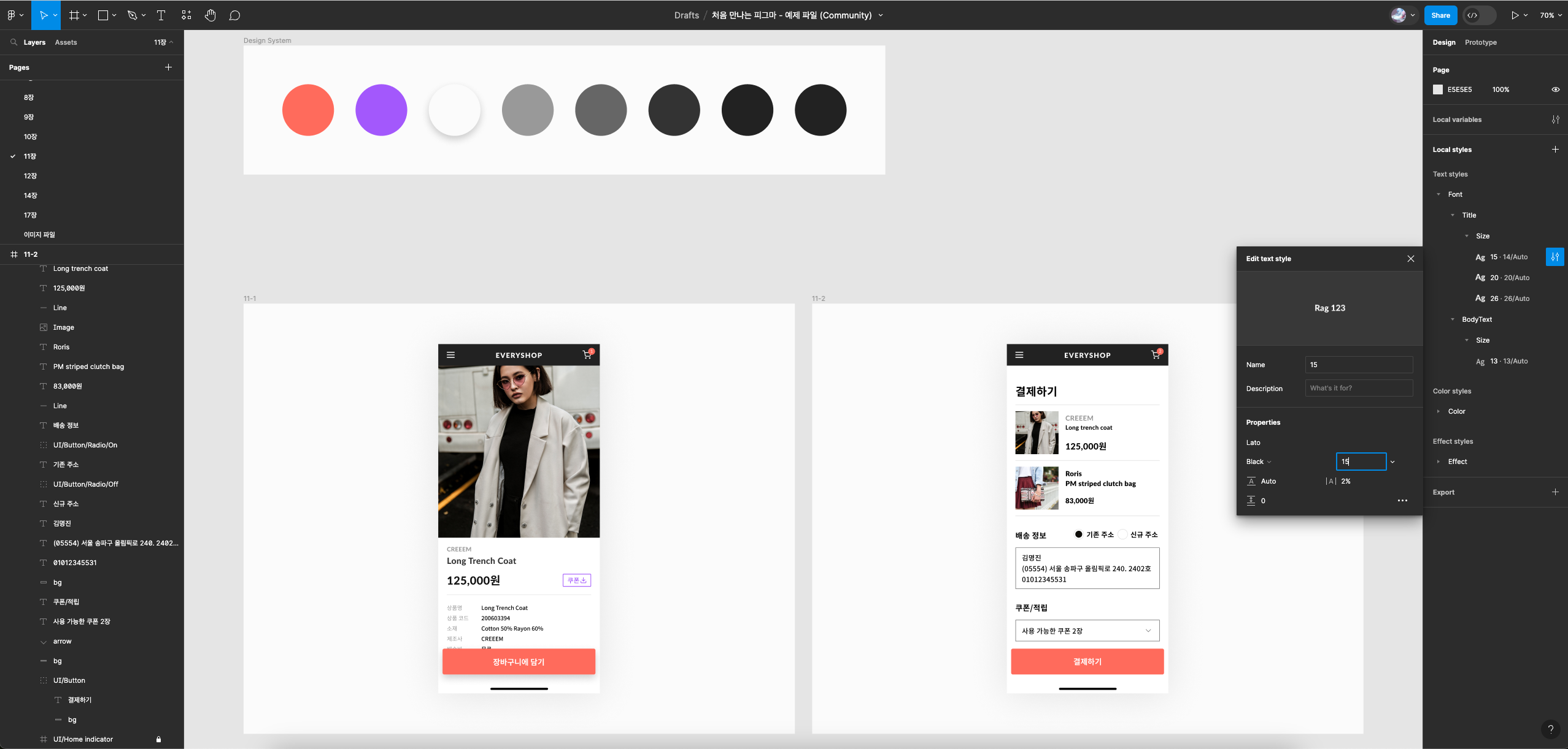 - 디자인 패널 - Text 패널 옆 아이콘 클릭 : Font/Title/Size/14 선택