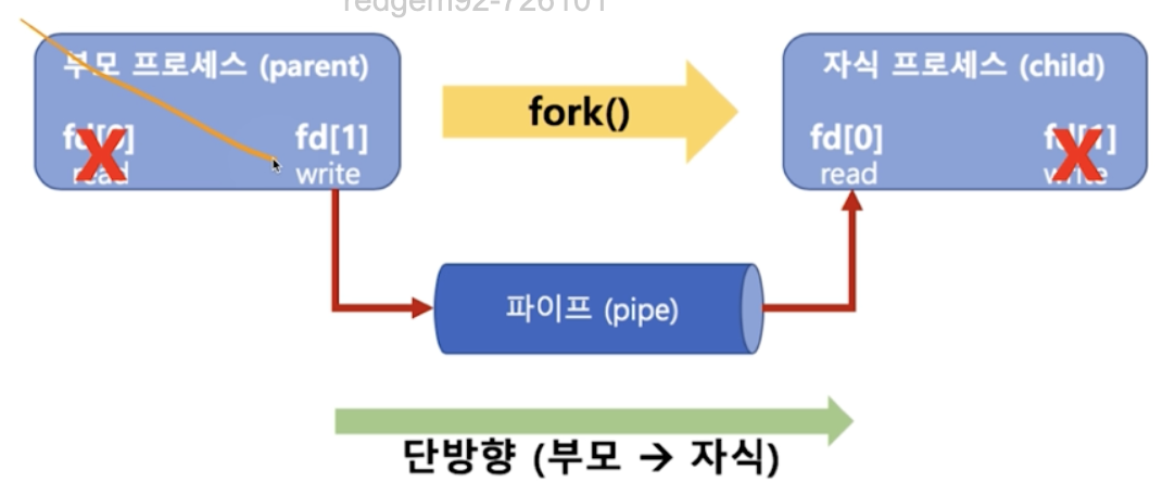 단방향 통신, 즉 부모-> 자식 프로세스 순으로 일방적으로 통신하는 기법