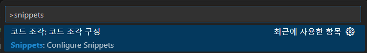 검색창에 snippets라고 입력하자.
