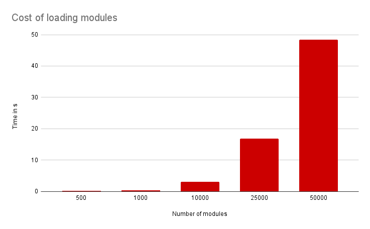 모듈 25000 개: 16.81s * 100 / 4 = ~7:00m 오버헤드