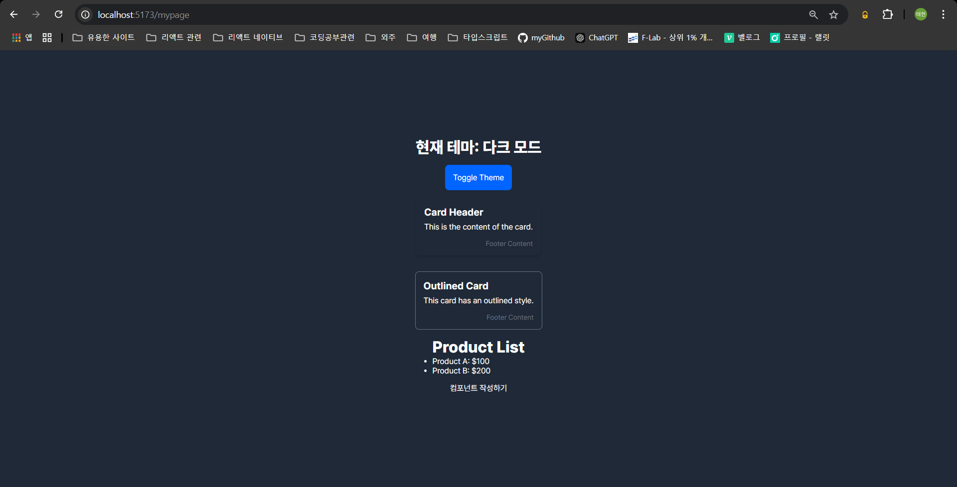 상단의 url이 /가 아닌 /mypage여도 잘 작동하는 모습을 볼 수 있다.