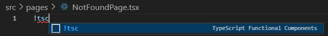 NotFoundPage에서 !tsc를 입력하니 내가 설정한 코드 스니펫을 볼 수 있었다.