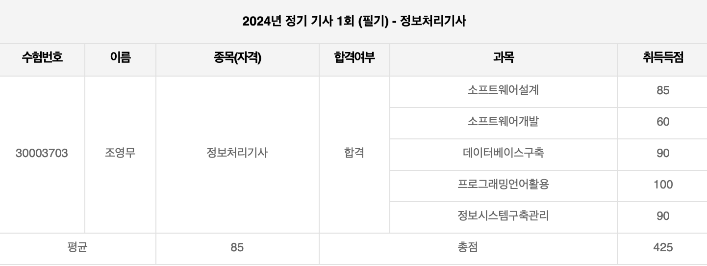 덕분에 3과목과 4,5 과목 일부분에 대한 부담이 많이 적었고 덕분에 만족스러운 결과가 나왔습니다.